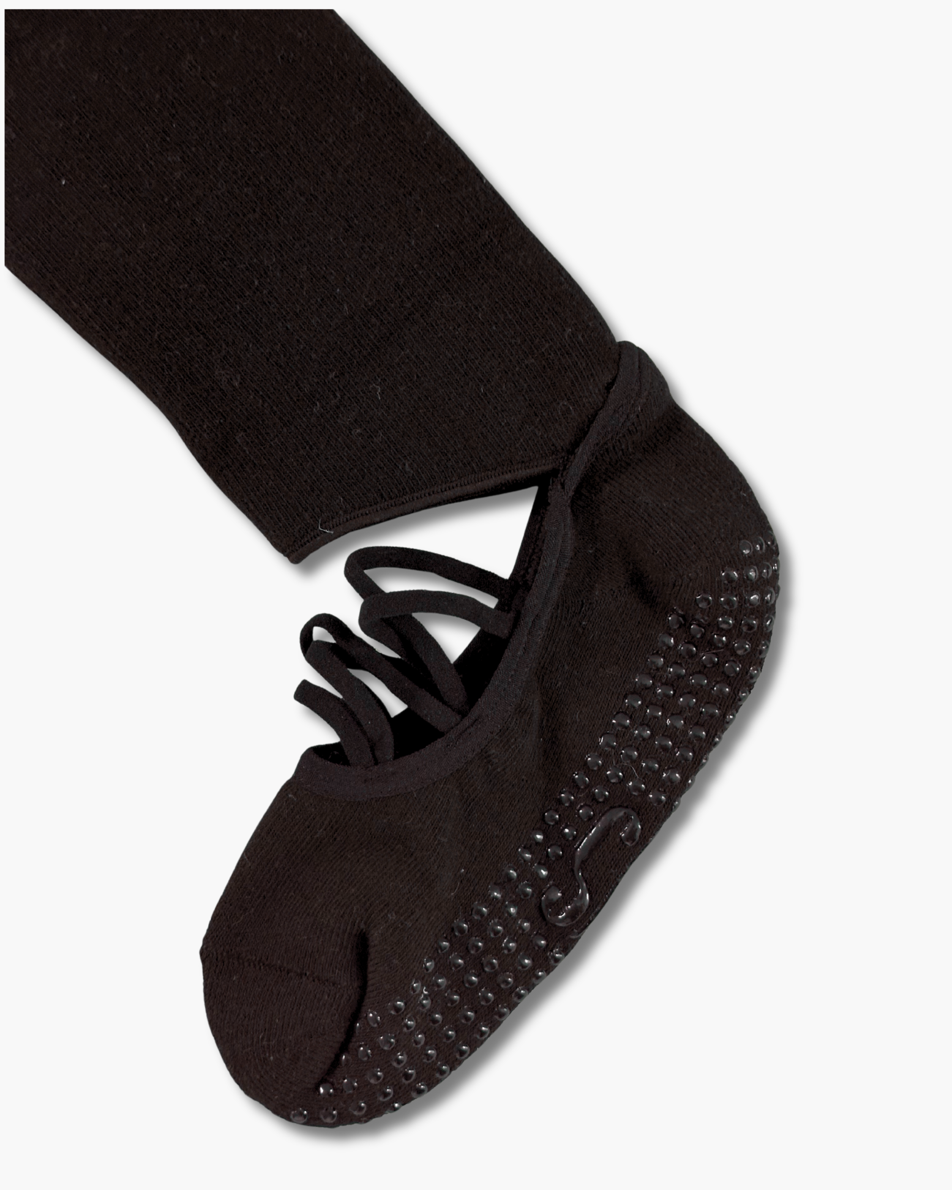 Det slitesterke antiskli-mønsteret på undersiden gir trygt grep på både matte og studiogulv, slik at du kan fokusere fullt på bevegelse uten å skli. Det elegante, åpne designet med myke kryss-stropper sørger for god ventilasjon og en sikker passform som følger fotens naturlige bevegelser – perfekt for pilates, yoga, barre eller hjemmetrening.